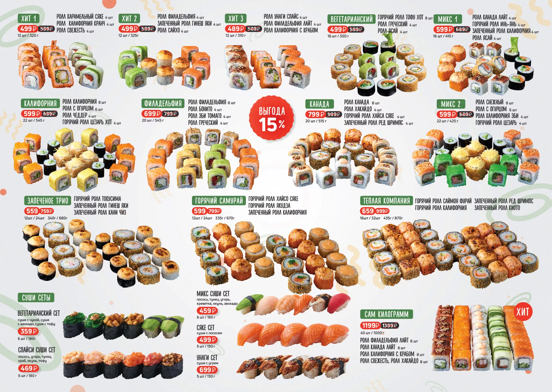 Оформление меню суши-бара «Roll Wok Club» в Советске