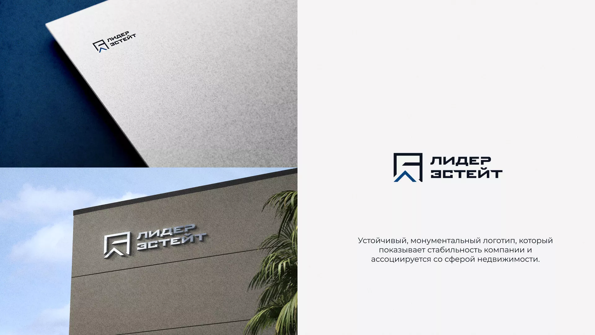 Разработка логотипа в Советске для агентства недвижимости «Лидер Эстейт». Устойчивый, монументальный логотип, который показывает стабильность компании и ассоциируется со сферой недвижимости.