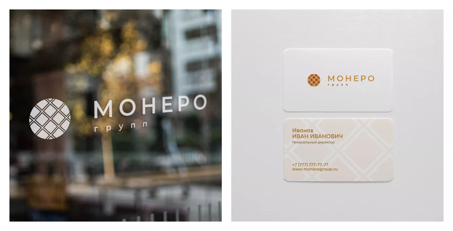 Разработка логотипа и фирменного стиля компании «Монеро групп» в Советске. Компания занимается оптовыми поставками кондитерских изделий в Советске.