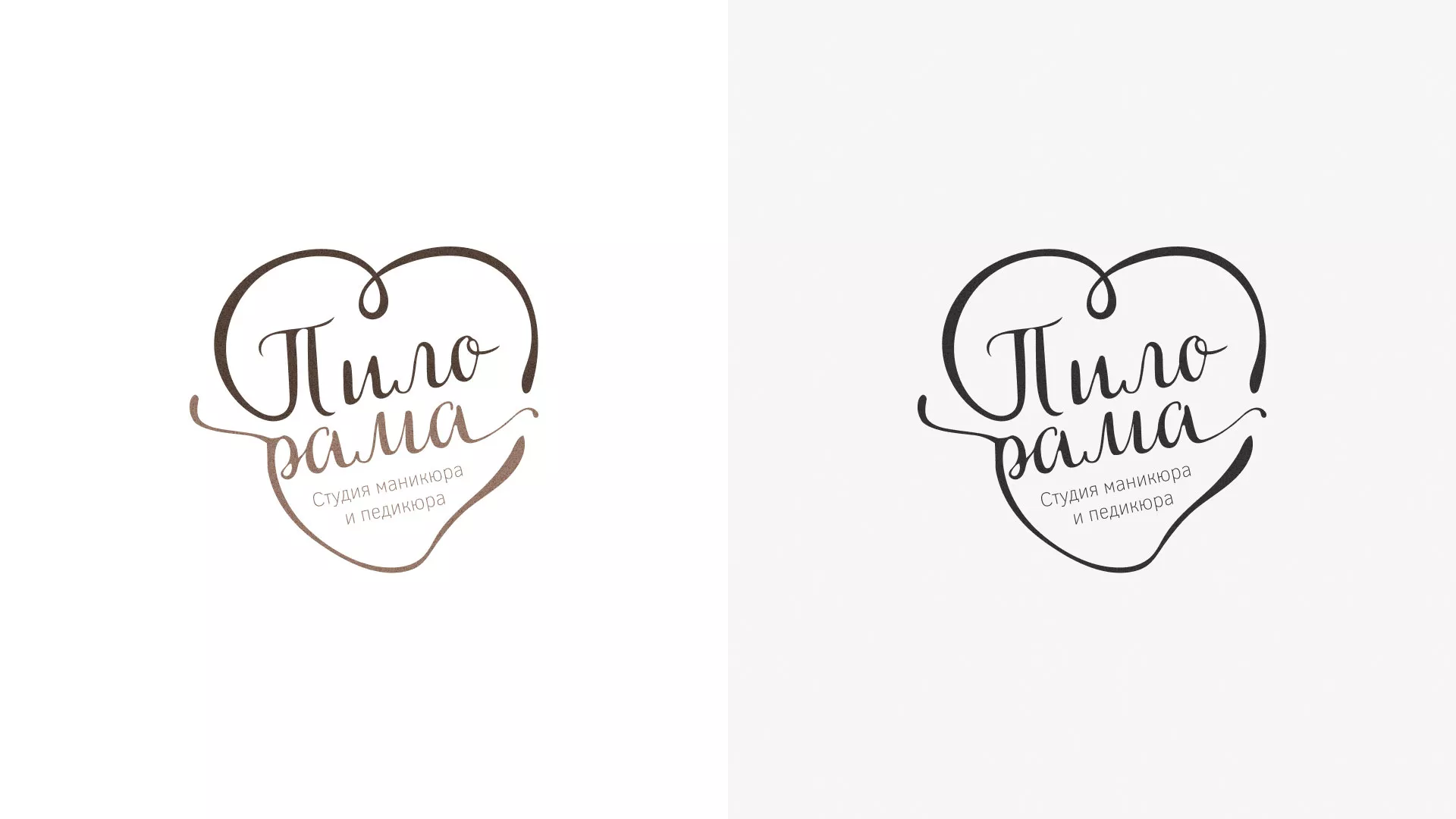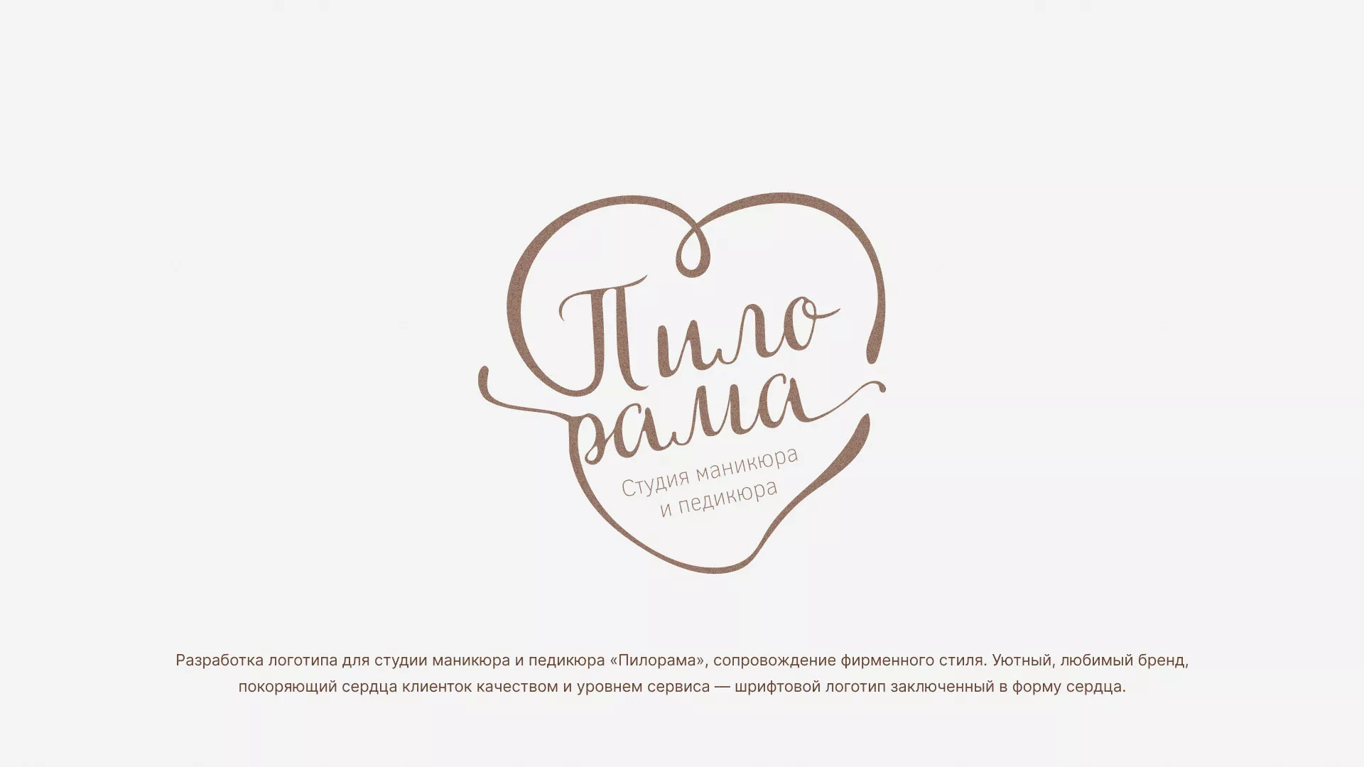 Разработка логотипа в Советске для студии маникюра и педикюра «Пилорама», сопровождение фирменного стиля. Уютный, любимый бренд, покоряющий сердца клиенток качеством и уровнем сервиса — шрифтовой логотип заключенный в форму сердца.