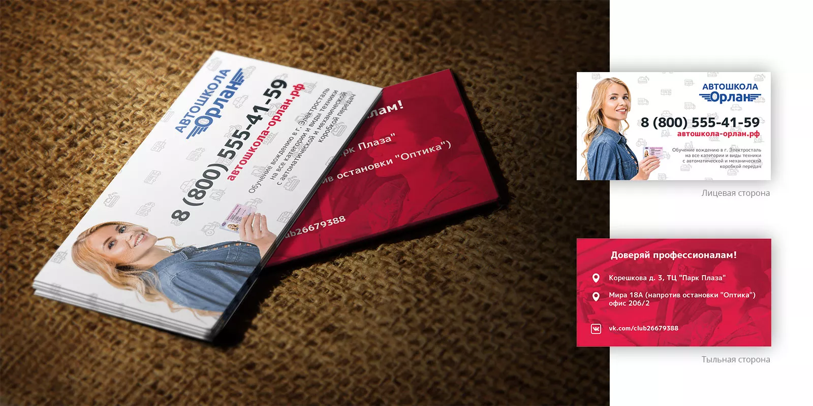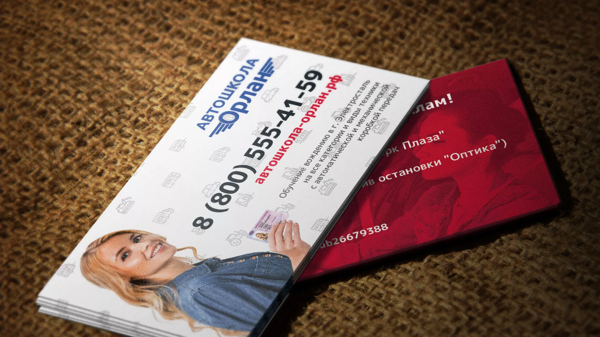 Разработка рекламных визиток автошколы «Орлан» в Советске
