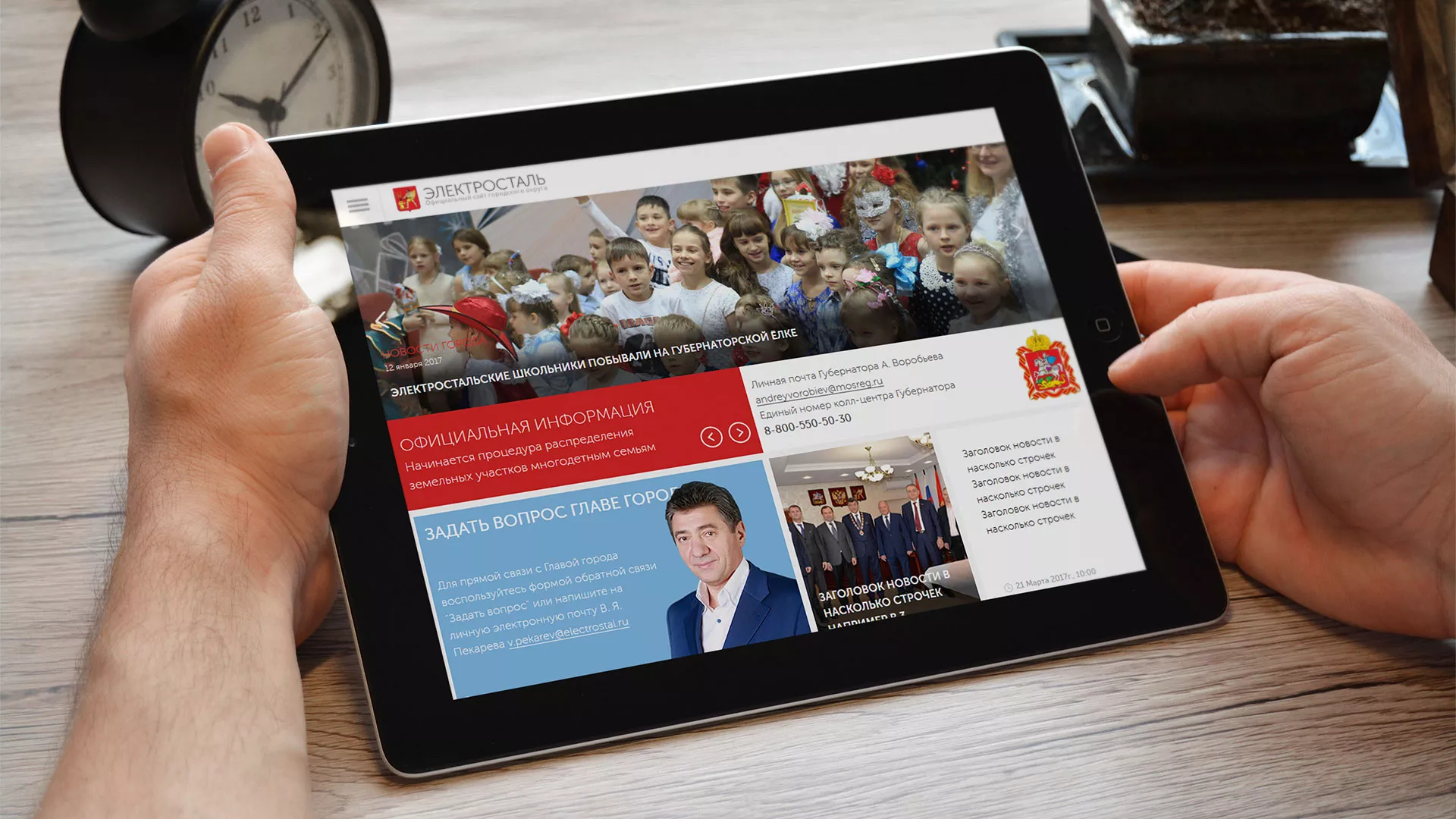 Компания «Мультзавод» квалифицирована в вопросе разработки сайта для администрации города. Мы успешно реализовали и обеспечиваем поддержку проекта для городского округа Электросталь. В рамках него мы спроектировали и внедрили: удобный и современный дизайн для разных категорий пользователей, систему для простого администрирования и взаимодействия с посетителями, оригинальную иконографику, адаптив под различные устройства (мониторы большого разрешения, планшеты, смартфоны и др.).