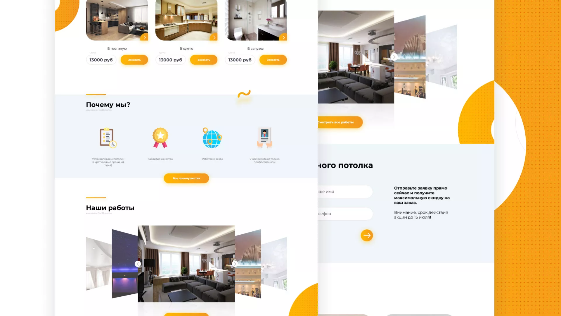 Вам нужна разработка сайта по натяжным потолкам в Советске? Специалисты компании «Мультзавод» готовы помочь! Мы предлагаем большой выбор уже готовых вариантов, а также можем создать и что-нибудь новое!