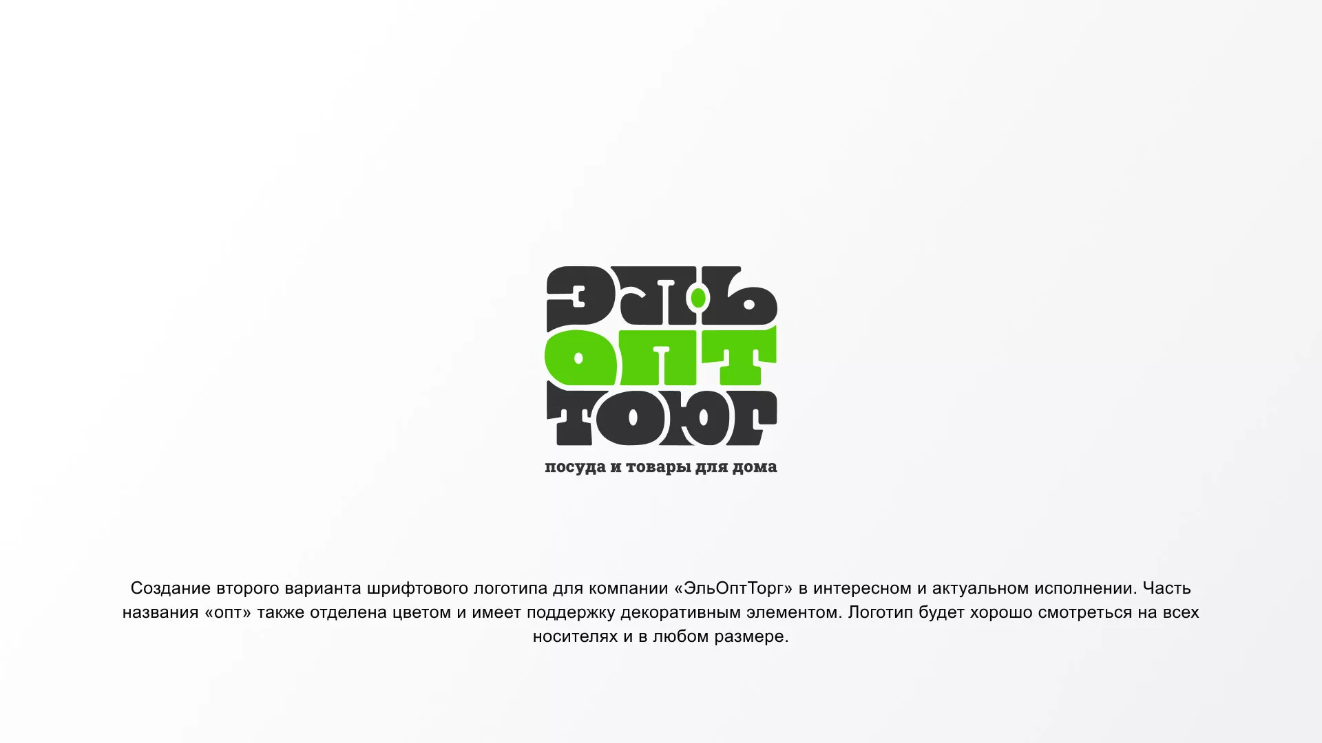 Создание второго варианта шрифтового логотипа в Советске для компании «ЭльОптТорг» в интересном и актуальном исполнении. Часть названия «опт» также отделена цветом и имеет поддержку декоративным элементом. Логотип будет хорошо смотреться на всех носителях и в любом размере.